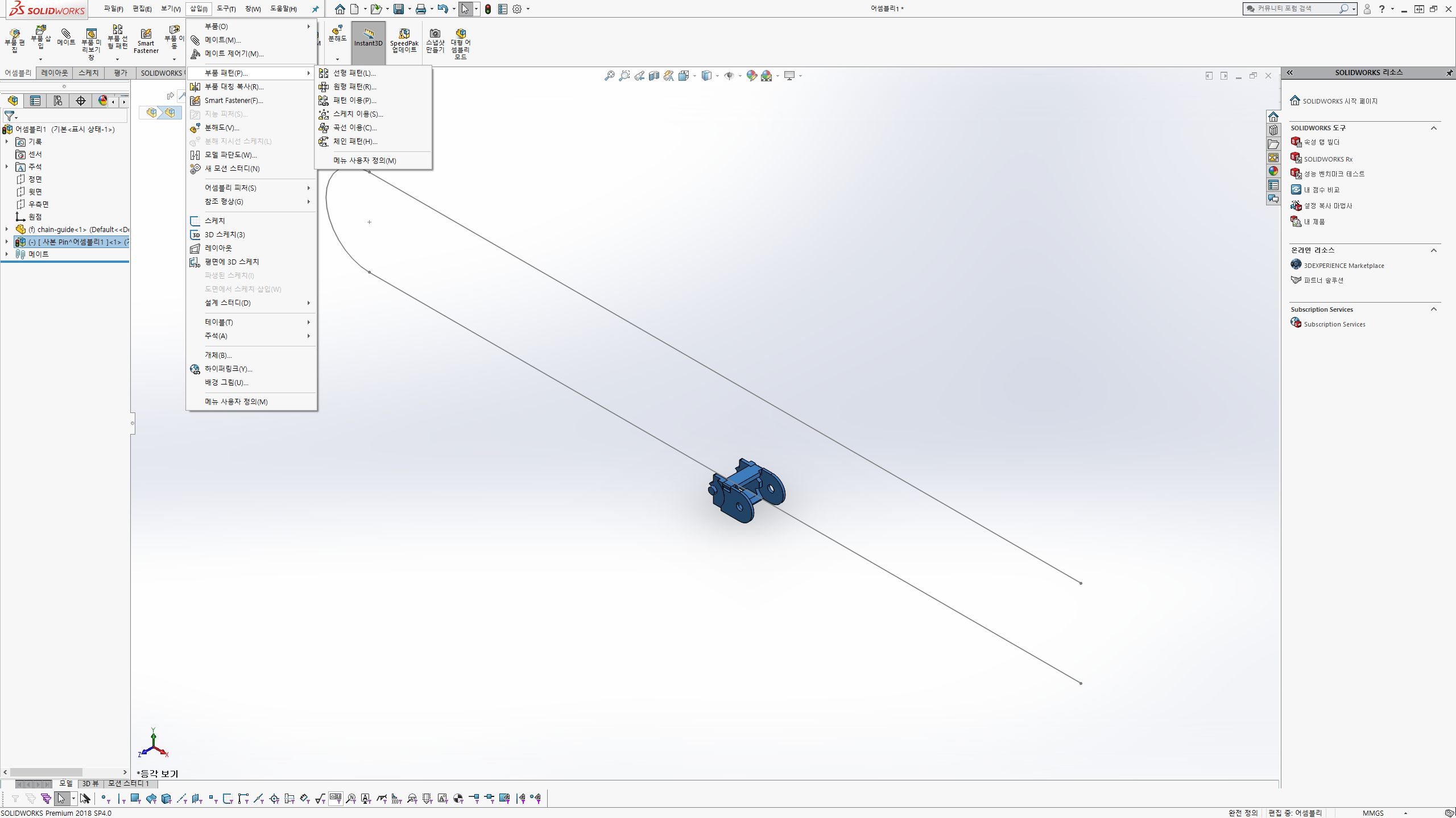 삽입/부품패턴/체인패턴을 선택합니다.